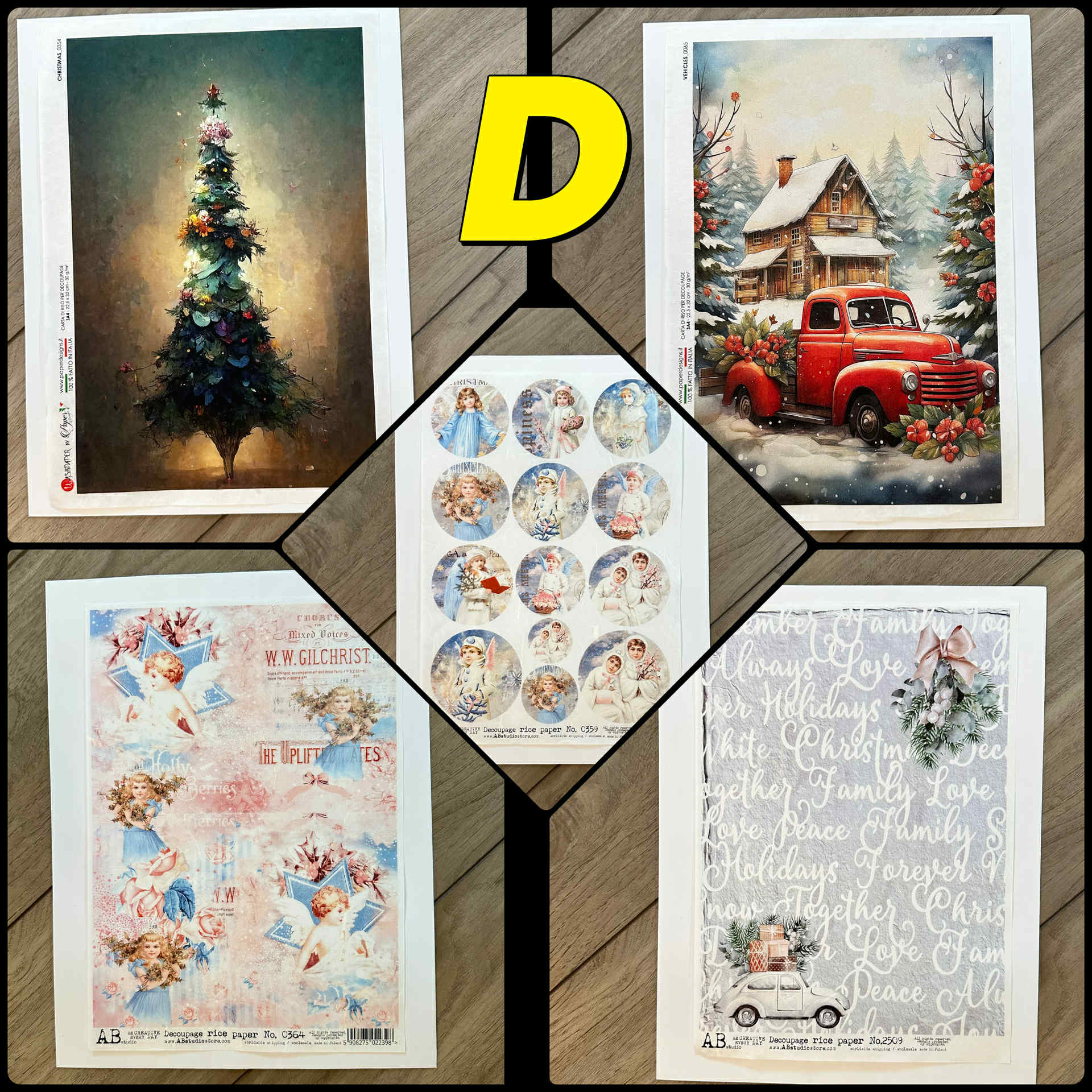 5 Rice Decoupage Papers | Sets D E F | Rice Paper Decoupage | AB Studios & Paper Designs | A4