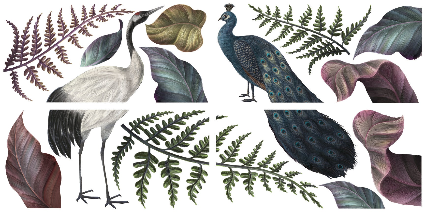 Introducing Dixie Belle‘s Elegant Avian Flora rub-on transfer, perfect for furniture enthusiasts. Adorned with graceful cranes, majestic peacocks, and intricate botanical leaves, this decorative furniture