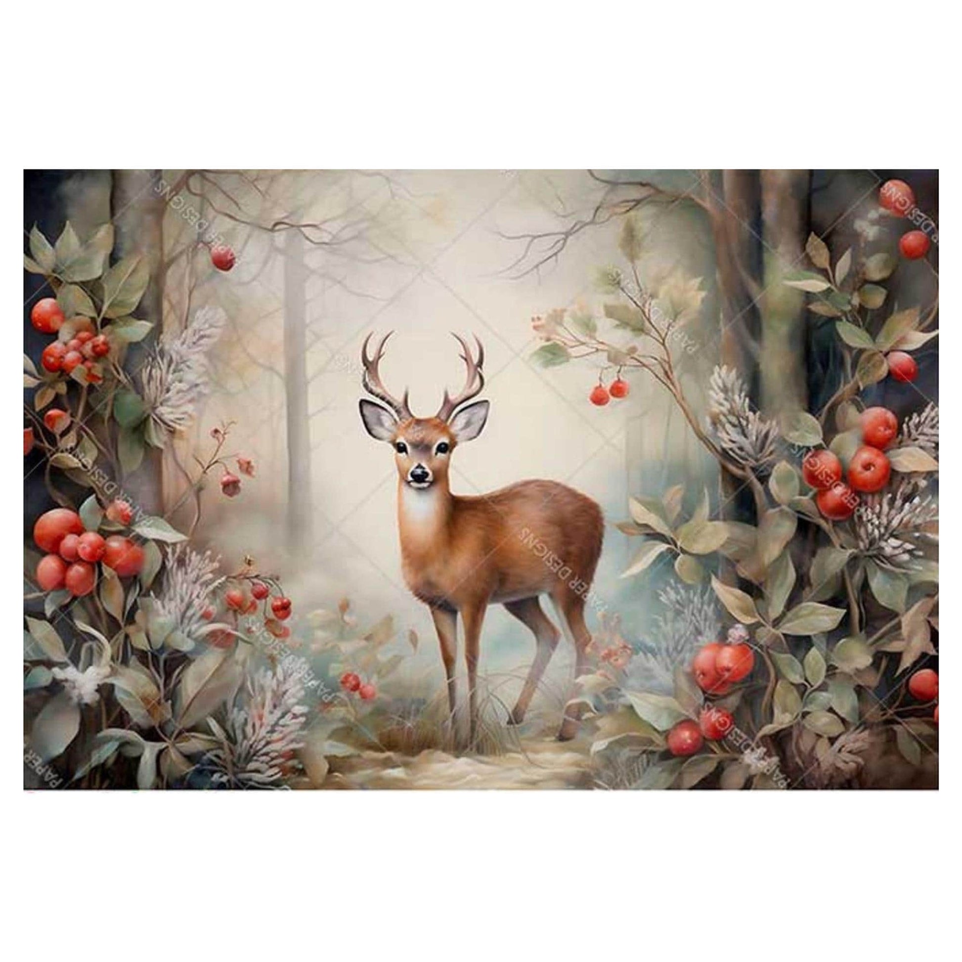 Festive Buck Scene | Rice Paper Decoupage | Paper Designs Animals 0214 | A4