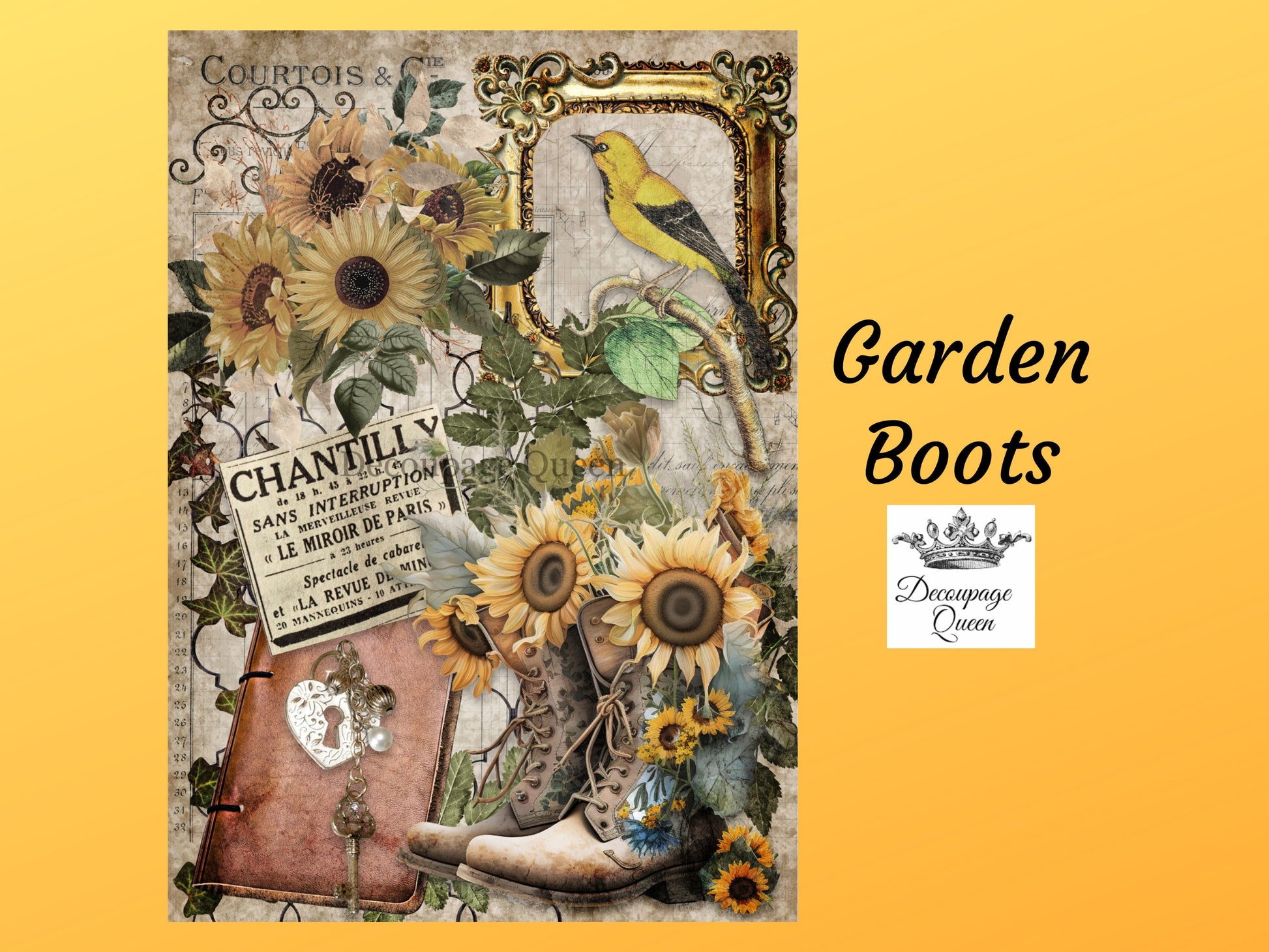 Garden Boots | Rice Paper Decoupage | Decoupage Queen | A4 & A3