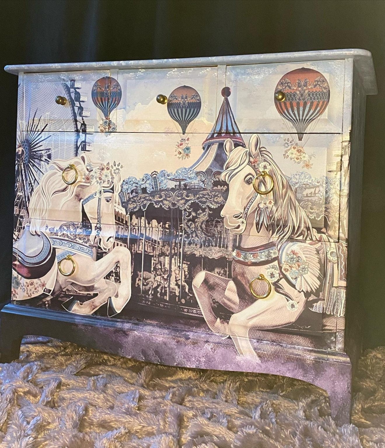 Let's Go To The Merry Go Round | Rub On Furniture Transfers | Hokus Pokus | Furniture Decals | 35 x 24