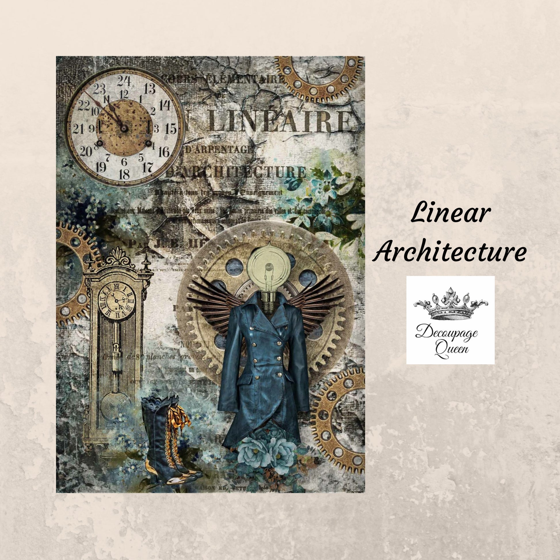 Linear Architecture | Rice Paper Decoupage | Decoupage Queen | 2 Sizes | RETIRED