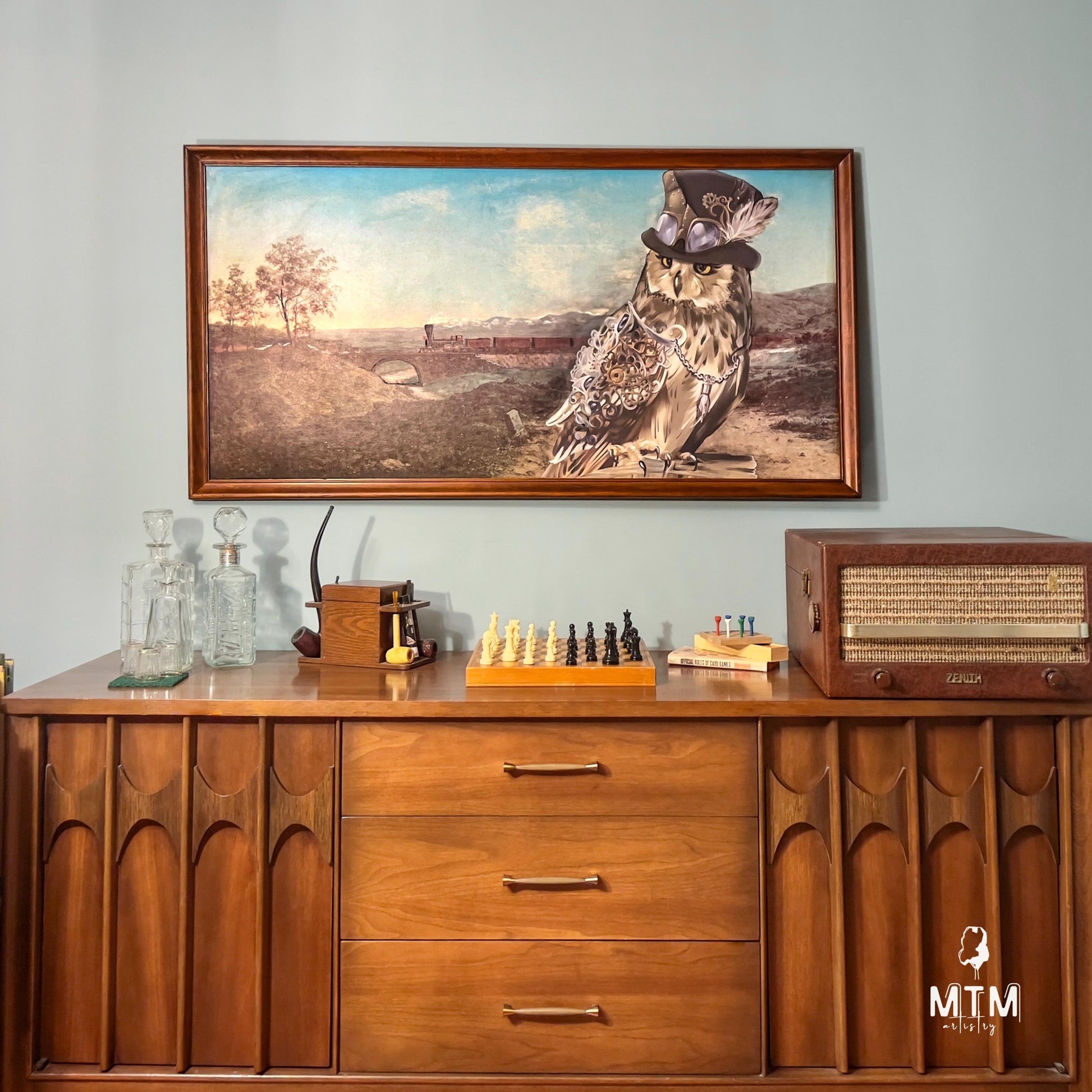 Transform your furniture with the Steampunk Owl Adventure Transfer. Featuring two owls, pine cones, maple leaves, and acorns, this large transfer adds a whimsical, nature-inspired touch to any piece. Perfect for adding playful charm and intricate detail to your DIY projects.