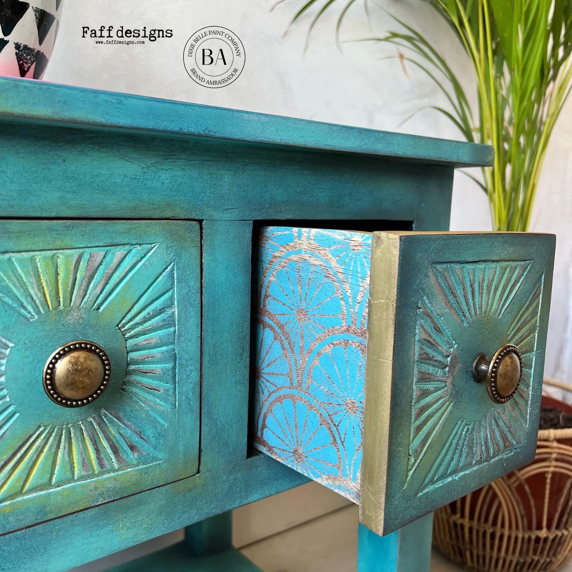 Create a raised pattern by using Dixie Belle Mud to fill your stencil, or simply apply the stencil directly to your project using your favorite Dixie Belle Paint color.